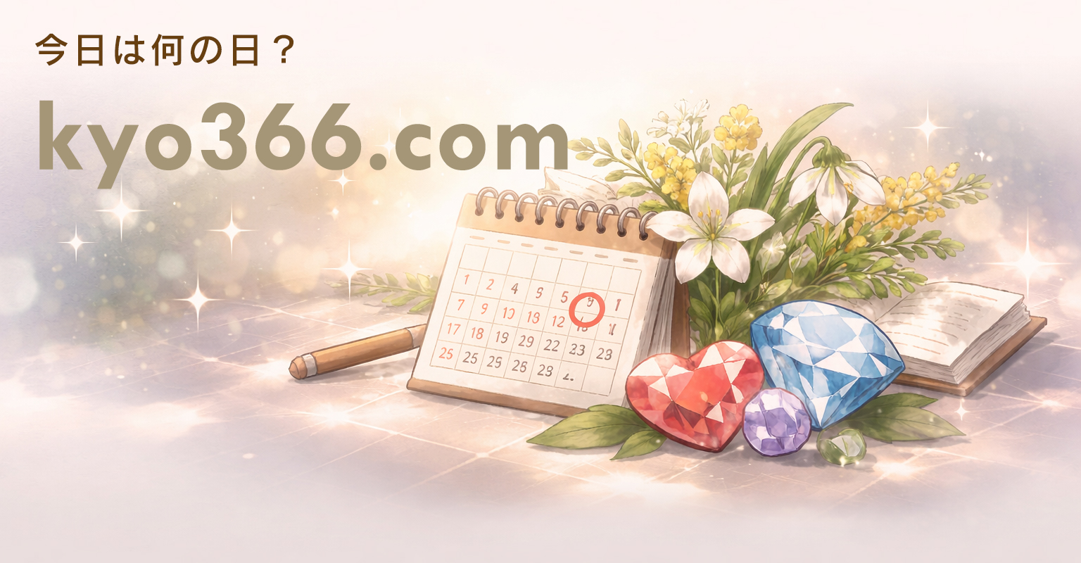 トップページ 2026.01.062026.01.08 今日は何の日? 今日366(kyo366) 記念日・出来事・誕生日の有名人・誕生花・誕生石を、日付ごとにまとめた雑学データベース。 気になる日をカレンダーから探せます。 今日 — 今日のページへ 📅 日付をクリックすると、その日の詳細ページが開きます ↔ 月送りで過去・未来の日付も確認できます 🔎 誕生花・誕生石や出来事をまとめてチェック 📅 カレンダーで探す 月送りで日付を選ぶだけ 💎 誕生花・誕生石 プレゼント選びのヒントに 📰 出来事・人物 その日の雑学まとめ ‹ -- › 1 SunMonTueWedThuFriSat12345678910111213141516171819202122232425262728293031 01 / 02 / 03 / 04 / 05 / 06 / 07 / 08 / 09 / 10 / 11 / 12