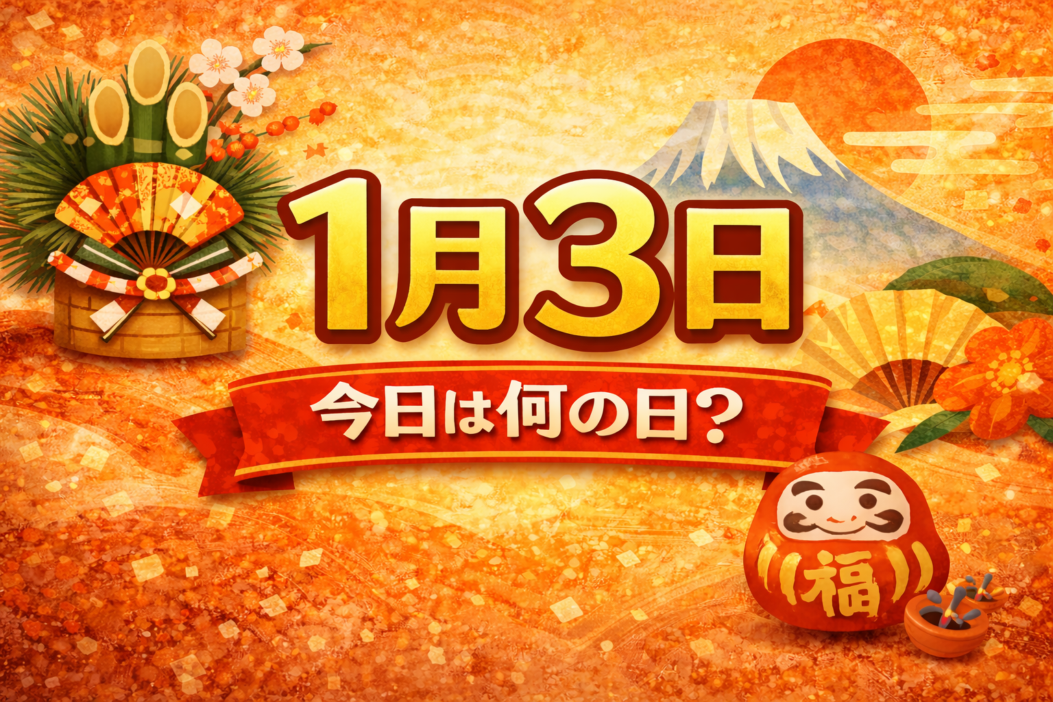 1月3日は、お正月の行事ムードが続きつつ、少しずつ日常へ戻る準備も始まる頃です。 箱根駅伝の復路が行われる日としても知られ、家でゆっくり過ごしながら観戦する人も多い一日です。 このページでは、1月3日の記念日、星座・誕生石・誕生花、風習・雑学、過去の出来事、誕生日の有名人をまとめて紹介します。