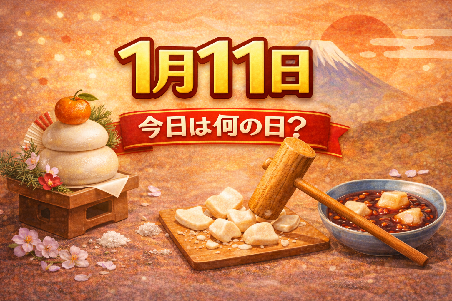 1月11日は、お正月行事の締めくくりとして意識されることが多い日です。 年始の特別な雰囲気が落ち着き、生活や仕事のリズムが本格的に戻り始めるタイミングでもあります。 このページでは、1月11日の記念日、星座・誕生石・誕生花、風習・雑学、過去の出来事、誕生日の有名人をまとめて紹介します。