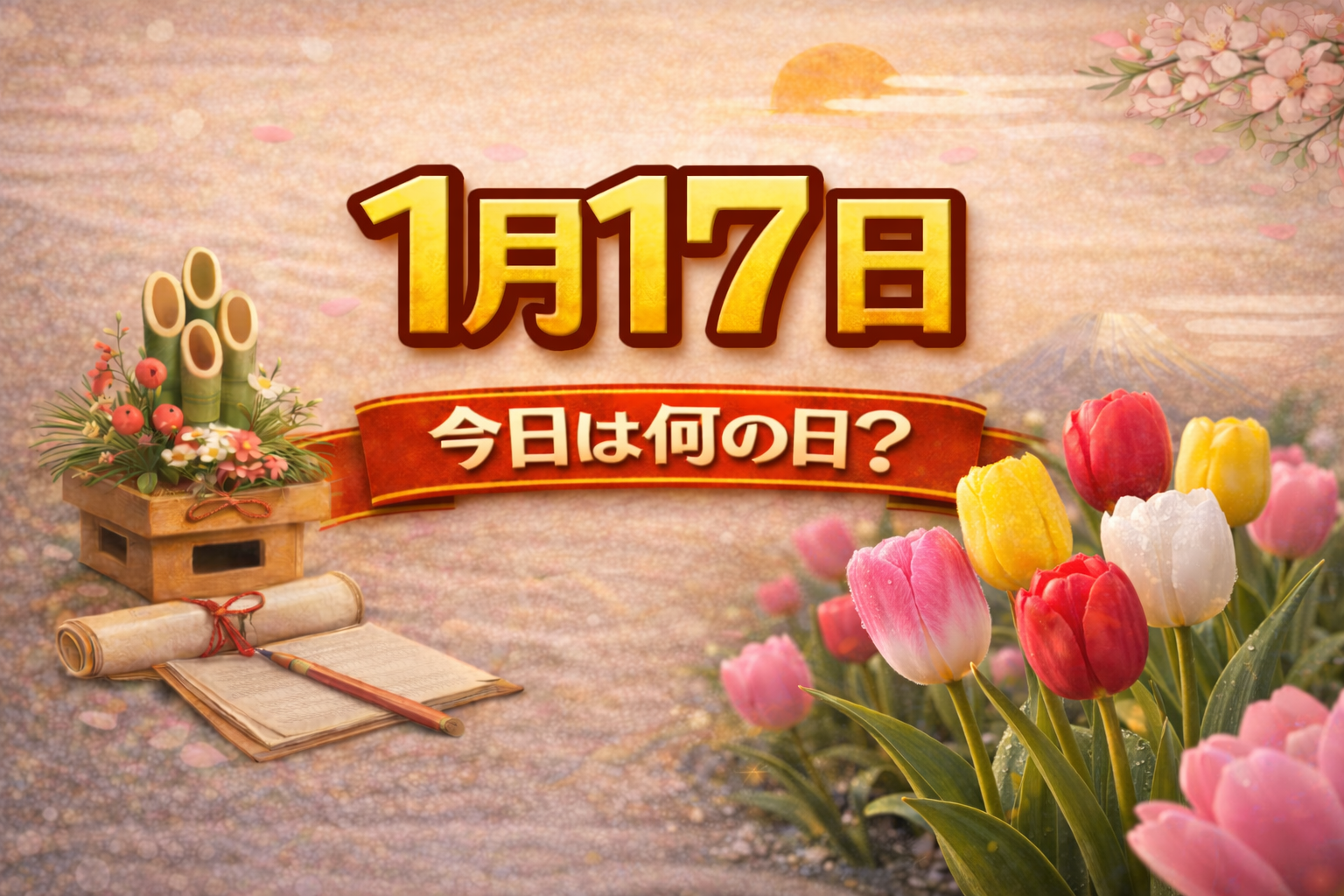 1月17日は、日本にとって忘れてはならない出来事が起きた日として記憶されています。 日々の暮らしの中で「当たり前」を見直し、防災や備えについて考えるきっかけになる日でもあります。 このページでは、1月17日の記念日や暦、誕生石・誕生花、過去の出来事、誕生日の有名人をまとめて紹介します。