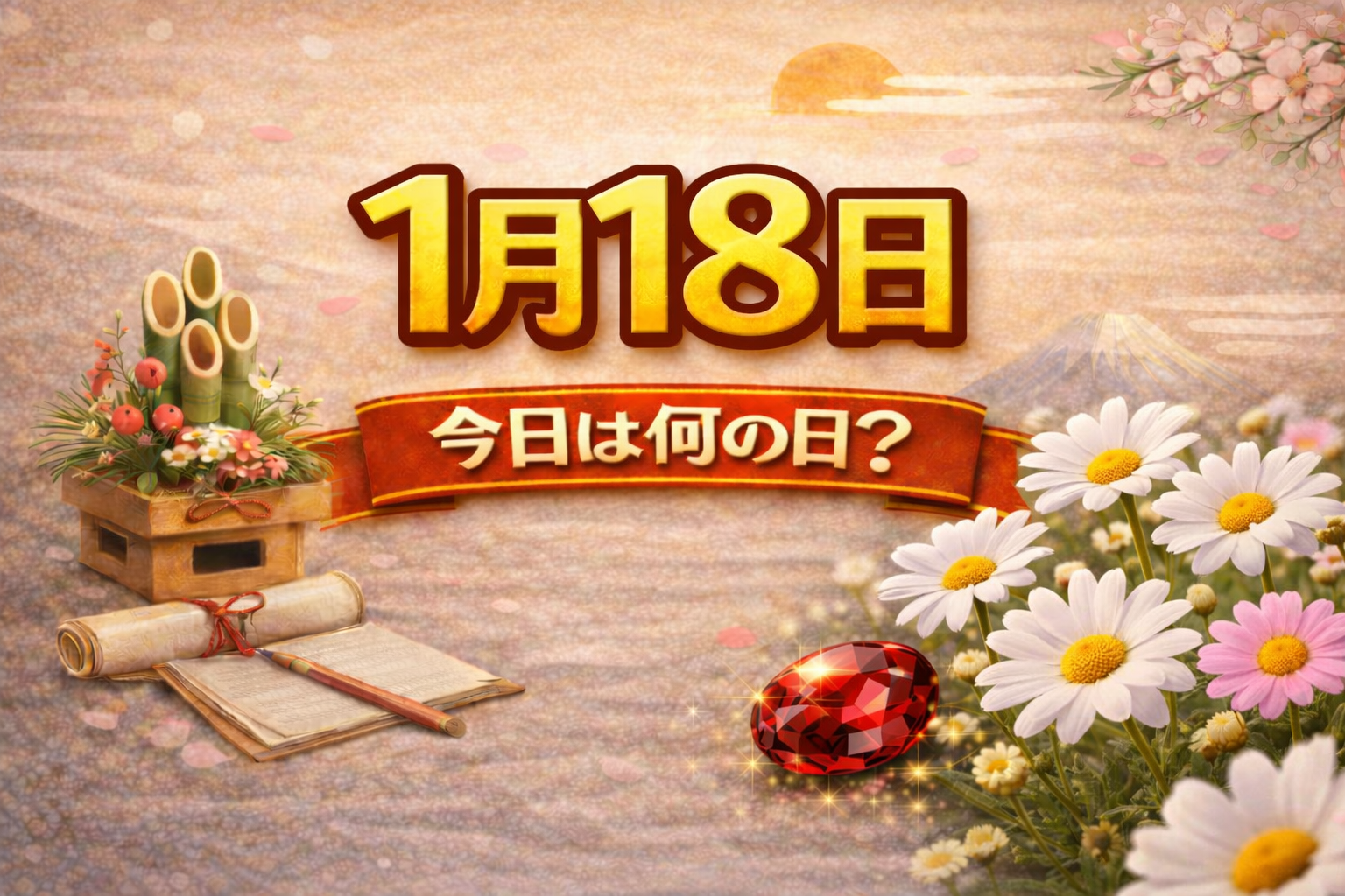 1月18日は、年始の慌ただしさがすっかり落ち着き、 日常を見る目が少しずつ現実的になってくる頃です。 新年に立てた目標を「続ける前提」で見直すのにも向いた日と言えるでしょう。 このページでは、1月18日の記念日や暦、誕生石・誕生花、過去の出来事、誕生日の有名人をまとめて紹介します。