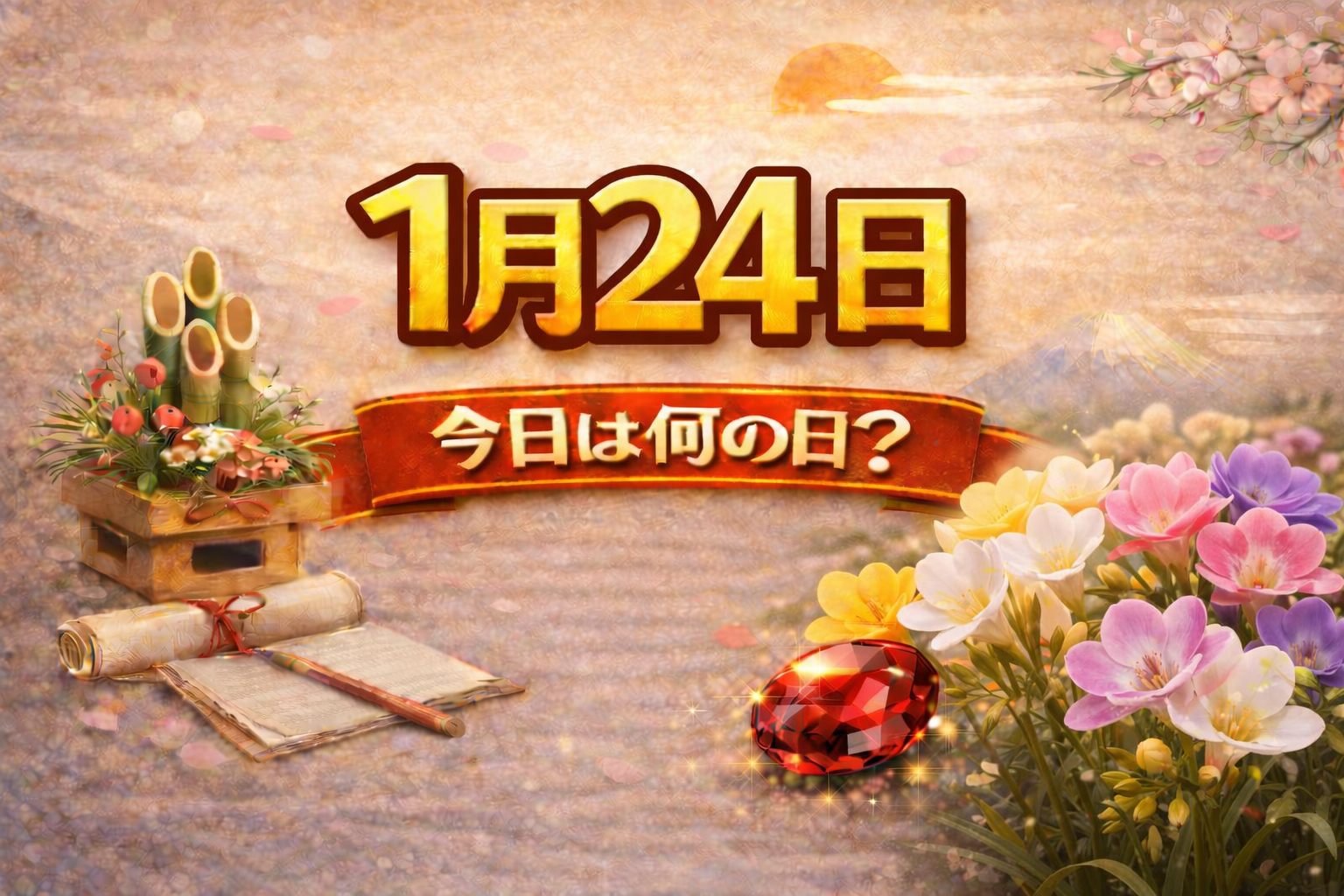 1月24日は、年明けの慌ただしさが落ち着き、日々のルーティンが戻ってくる頃です。 「学び」や「準備」をテーマに小さな改善を積み重ねるのにも向いたタイミングと言えるでしょう。 このページでは、1月24日の記念日や暦、誕生石・誕生花、過去の出来事、誕生日の有名人などをまとめて紹介します。