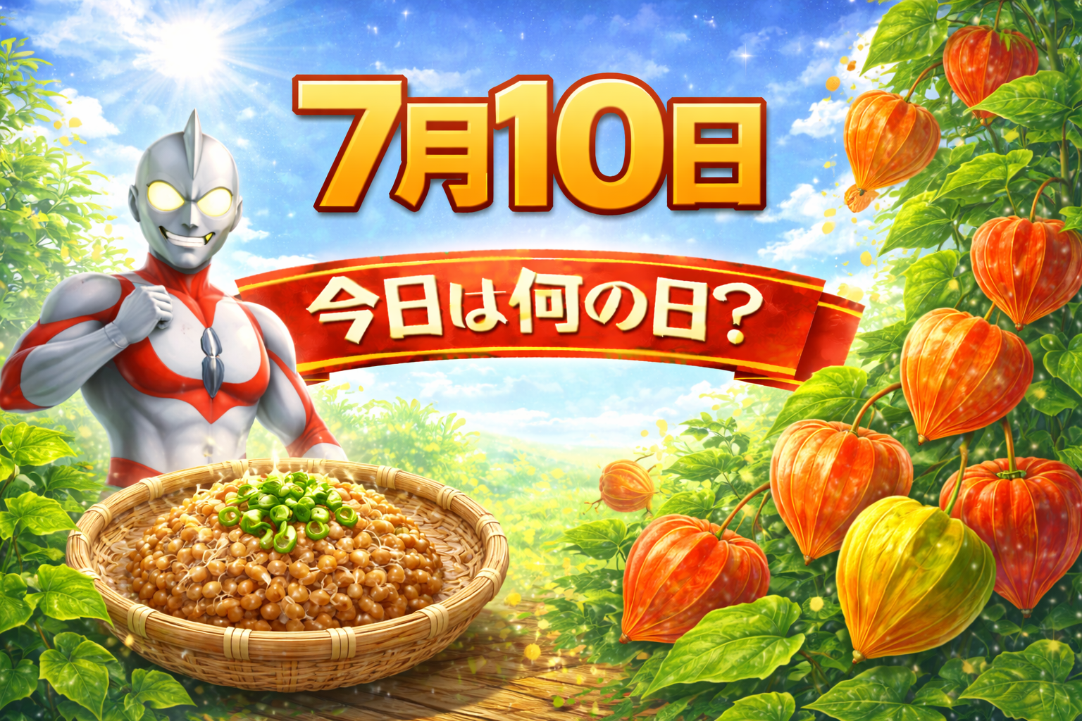 7月10日は、健康や日常生活を見直すきっかけになる記念日が多い日です。 「納豆の日」「ウルトラマンの日」などが知られ、食や文化に目を向けるタイミングとしても意識しやすい一日です。 このページでは、7月10日の記念日や暦、誕生石・誕生花、過去の出来事、誕生日の有名人をまとめて紹介します。