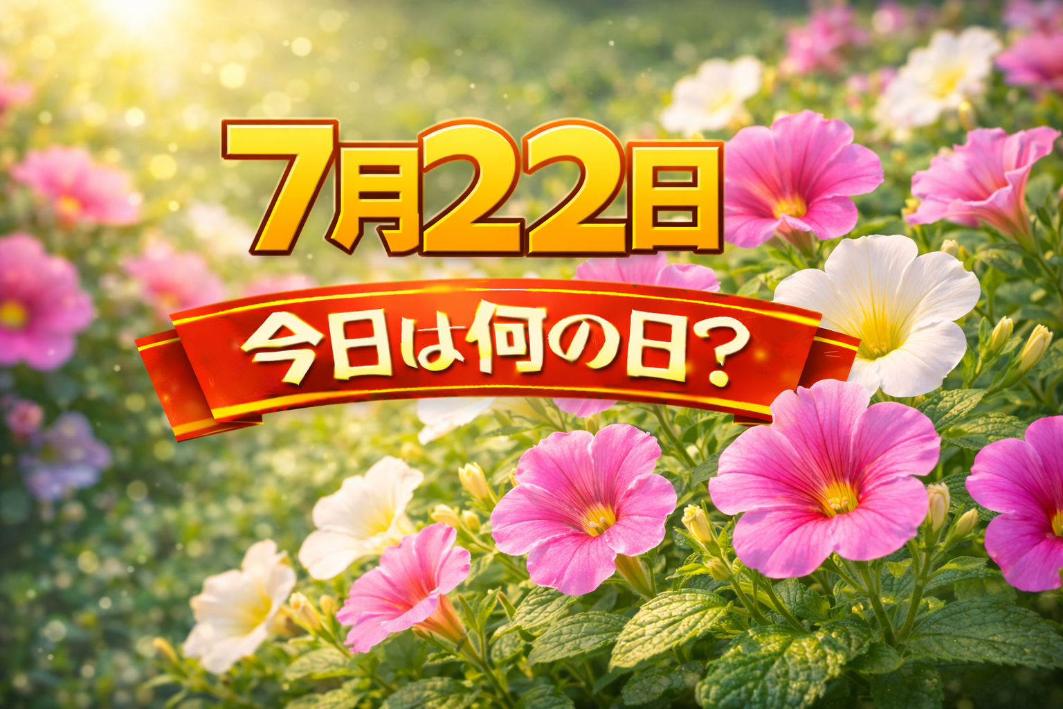 7月22日は、季節の移ろいを感じながら、生活や文化、健康に目を向ける記念日が多く並ぶ一日です。 夏らしさが本格化する頃でもあり、日々の過ごし方を少し見直すきっかけとしても意識しやすい日です。 このページでは、7月22日の記念日や暦、誕生石・誕生花、過去の出来事、誕生日の有名人をまとめて紹介します。
