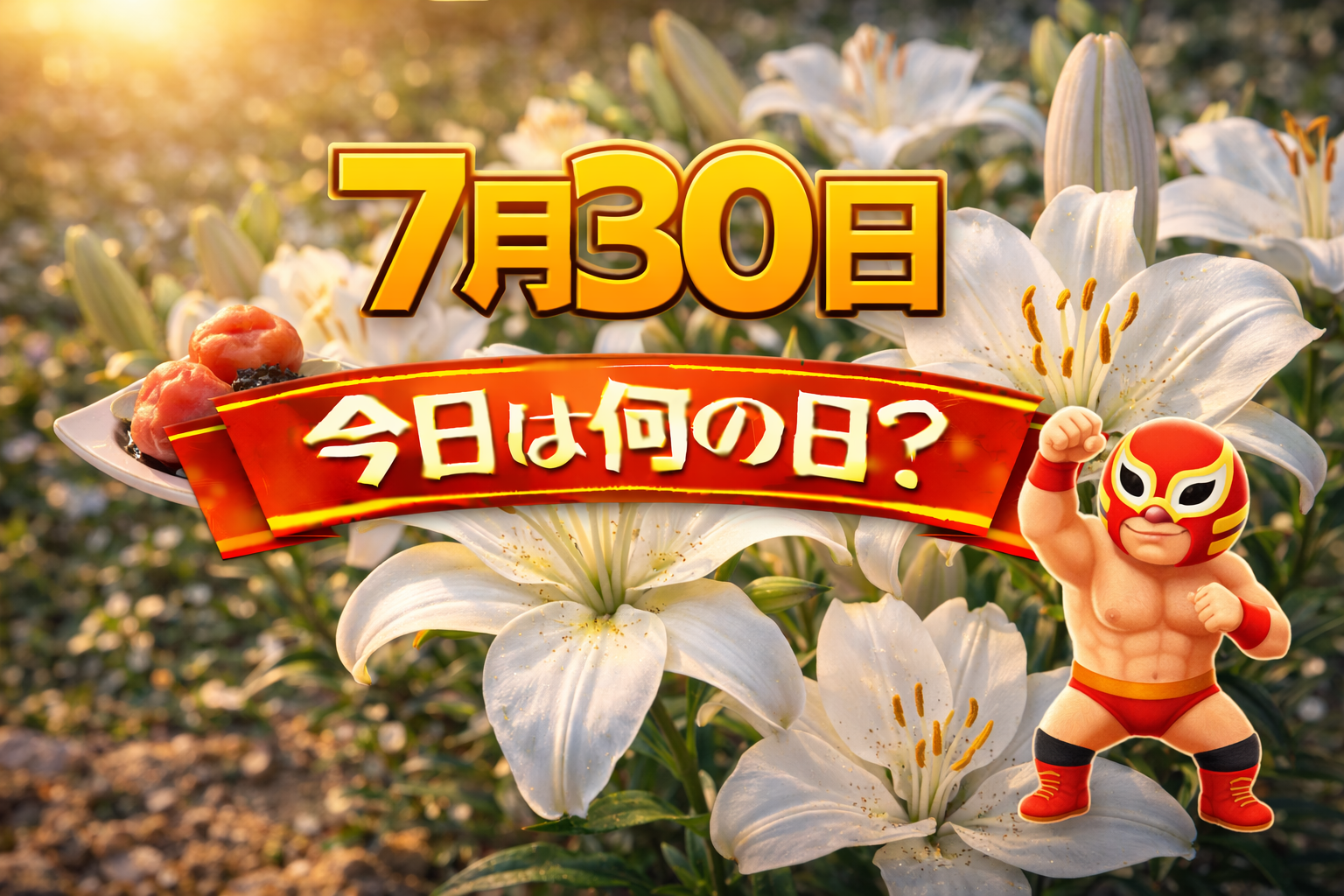 7月30日は、梅干しやスポーツ、暮らしの節目に関する話題が集まりやすい日です。 夏バテ対策や生活習慣の見直しにも向いており、食と健康を意識するきっかけにもなります。 このページでは、7月30日の記念日や暦、誕生石・誕生花、過去の出来事、誕生日の有名人をまとめて紹介します。