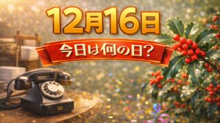 12月12月16日は何の日?記念日・出来事・誕生日の有名人まとめ 2026年 12月16日 (水) 赤口 (六曜とは?) 2027年 12月16日 (木) 大安 (六曜とは?) 12月16日は、「伝える」「残す」「整える」を意識しやすい日です。電話が開通して“声が届く”ようになった歴史、紙の工場が動き出し...12月