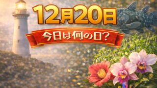 12月12月20日は何の日?記念日・出来事・誕生日の有名人まとめ 2026年 12月20日 (日) 仏滅 (六曜とは?) 2027年 12月20日 (月) 先負 (六曜とは?) 12月20日は、「名前をつけて残すこと」と「健康を守るための習慣」を意識しやすい日です。日々使う道具や表現、そして体調管理のため...12月