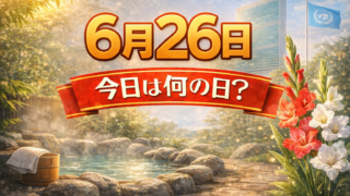 6月6月26日は何の日?記念日・出来事・誕生日の有名人まとめ 2026年 6月26日 (金) 仏滅 (六曜とは?) 2027年 6月26日 (土) 大安 (六曜とは?) 6月26日は、少し視野を広げて「整える」と「守る」を意識したい日です。慌ただしい時期でも、身近なルールや生活のリズムを見直すことで安...6月