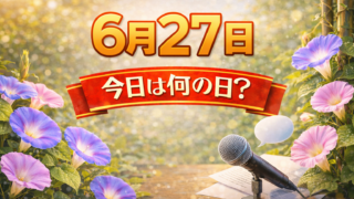 6月6月27日は何の日?記念日・出来事・誕生日の有名人まとめ 2026年 6月27日 (土) 大安 (六曜とは?) 2027年 6月27日 (日) 赤口 (六曜とは?) 6月27日は、気持ちをリセットして「整える」ことに向いた日です。週の終わりに向けて、生活の小さな違和感を直しておくと、次の予定が回り...6月