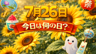 7月7月26日は何の日?記念日・出来事・誕生日の有名人まとめ 2026年 7月26日 (日) 友引 (六曜とは?) 2027年 7月26日 (月) 友引 (六曜とは?) 7月26日は、食や暮らし、文化に関する記念日が多く紹介される日です。夏の後半に差しかかる時期でもあり、体調管理や生活習慣を見直すきっ...7月