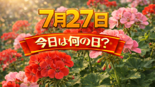 7月7月27日は何の日?記念日・出来事・誕生日の有名人まとめ 2026年 7月27日 (月) 先負 (六曜とは?) 2027年 7月27日 (火) 先負 (六曜とは?) 7月27日は、歴史・文化・暮らしに関わる記念日が比較的多く集まる日です。夏休みの時期とも重なり、学び直しや生活リズムを整えるきっかけ...7月