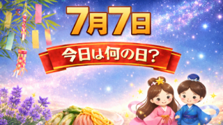 7月7月7日は何の日?記念日・出来事・誕生日の有名人まとめ 2026年 7月7日 (火) 先負 (六曜とは?) 2027年 7月7日 (水) 仏滅 (六曜とは?) 7月7日は「七夕(たなばた)」で広く知られる日です。短冊に願いごとを書いたり、季節の食や夏の風物詩を楽しんだりと、“夏らしさ”を意識しや...7月