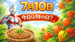 7月7月10日は何の日?記念日・出来事・誕生日の有名人まとめ 2026年 7月10日 (金) 赤口 (六曜とは?) 2027年 7月10日 (土) 赤口 (六曜とは?) 7月10日は、健康や日常生活を見直すきっかけになる記念日が多い日です。「納豆の日」「ウルトラマンの日」などが知られ、食や文化に目を向...7月