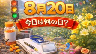 8月8月20日は何の日?記念日・出来事・誕生日の有名人まとめ 2026年 8月20日 (木) 友引 (六曜とは?) 2027年 8月20日 (金) 先勝 (六曜とは?) 8月20日は、夏の疲れが少しずつ表に出やすくなる頃。「健康」や「生活リズム」を見直す記念日が多く、無理をしすぎない過ごし方を意識した...8月