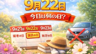 9月9月22日は何の日?記念日・出来事・誕生日の有名人まとめ 2026年 9月22日 (火) 先勝 (六曜とは?) 2027年 9月22日 (水) 大安 (六曜とは?) 9月22日は、環境や暮らしを見直す「カーフリーデー」や、インターネットとつながる生活を祝う「OneWebDay」など、現代の社会課題...9月