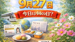 9月9月27日は何の日?記念日・出来事・誕生日の有名人まとめ 2026年 9月27日 (日) 赤口 (六曜とは?) 2027年 9月27日 (月) 先勝 (六曜とは?) 9月27日は、教育や知識、文化の継承に関わる記念日が多く、「学ぶこと」「伝えること」の意味を改めて考えやすい日です。日常の中で当たり...9月