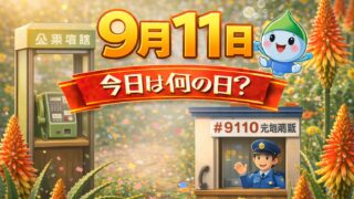 9月9月11日は何の日?記念日・出来事・誕生日の有名人まとめ 2026年 9月11日 (金) 赤口 (六曜とは?) 2027年 9月11日 (土) 赤口 (六曜とは?) 9月11日は、身近な「相談先」や「連絡手段」を見直すきっかけになる日です。日本では「警察相談の日(#9110の日)」や「公衆電話の日...9月