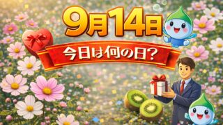 9月9月14日は何の日?記念日・出来事・誕生日の有名人まとめ 2026年 9月14日 (月) 大安 (六曜とは?) 2027年 9月14日 (火) 先負 (六曜とは?) 9月14日は、秋の花「コスモス」にちなんだ記念日が知られるほか、キウイを贈る日や、バレンタイン関連の“半年後”として語られることもあ...9月