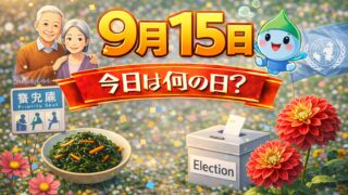 9月9月15日は何の日?記念日・出来事・誕生日の有名人まとめ 2026年 9月15日 (火) 赤口 (六曜とは?) 2027年 9月15日 (水) 仏滅 (六曜とは?) 9月15日は、福祉・社会参加・健康などを考えるきっかけになりやすい日です。かつて日本の「敬老の日」は9月15日でしたが、現在は日付が...9月
