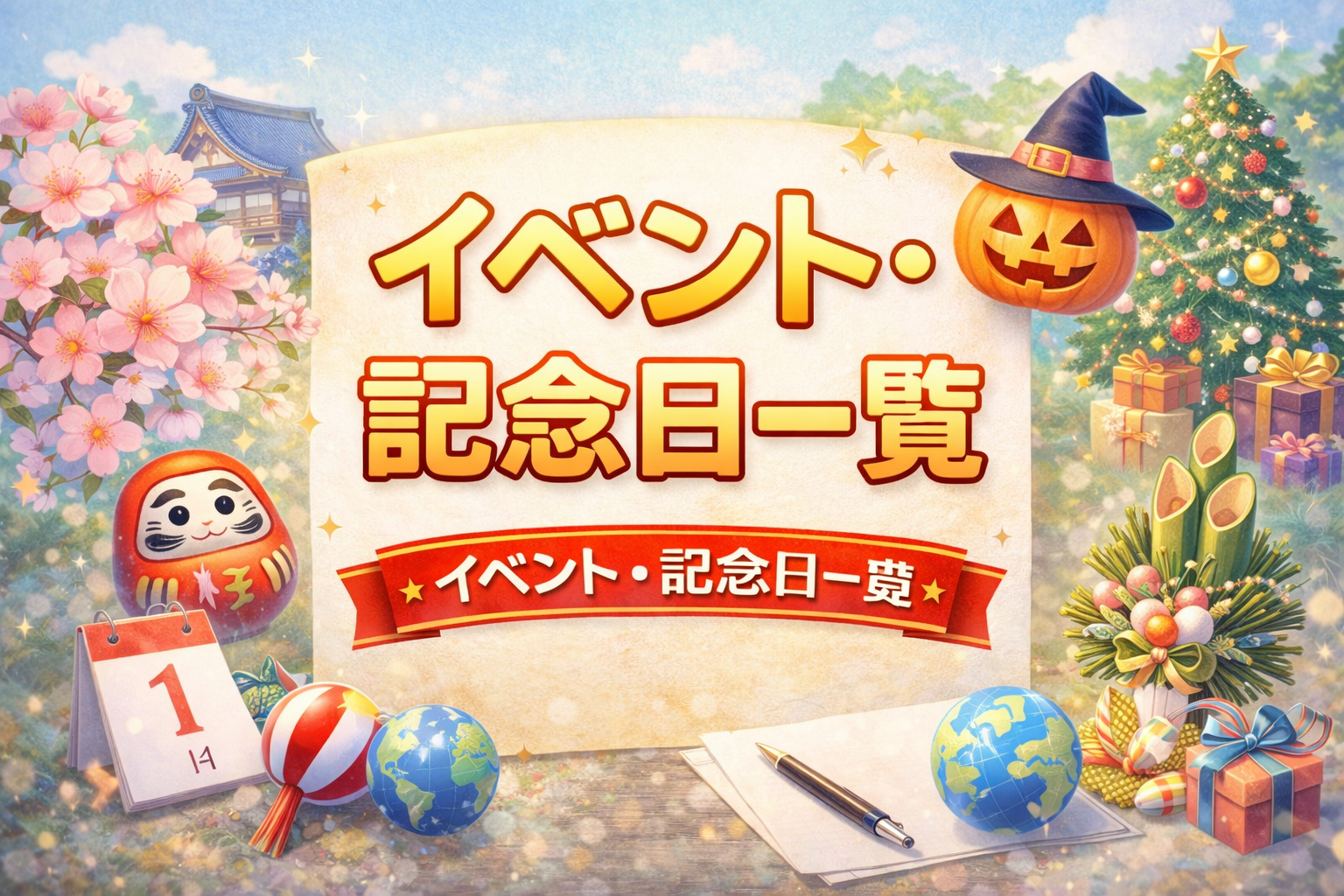 kyo366では、季節の行事・国際デー・食の記念日などを「イベント」としてまとめています。 気になるテーマから選んで、由来や意味、関連する日付ページへ移動できます。