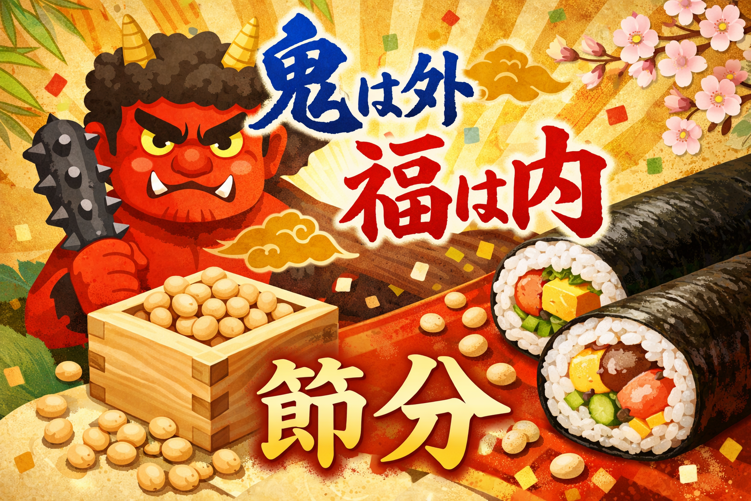 節分(せつぶん)は、季節の変わり目に邪気を払い、無病息災を願う日本の伝統行事です。 現在では「2月3日頃」に行われる行事として知られていますが、もともとは年に複数回あった行事でした。 このページでは、節分の意味や由来、豆まきの理由、鬼の正体、関連する日付ページまで詳しく紹介します。